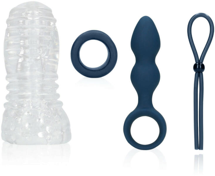 • 4 termék egyetlen csomagban - maszturbátor, here- és péniszgyűrű és egy kis méretű anál dildó a változatos örömszerzésért
