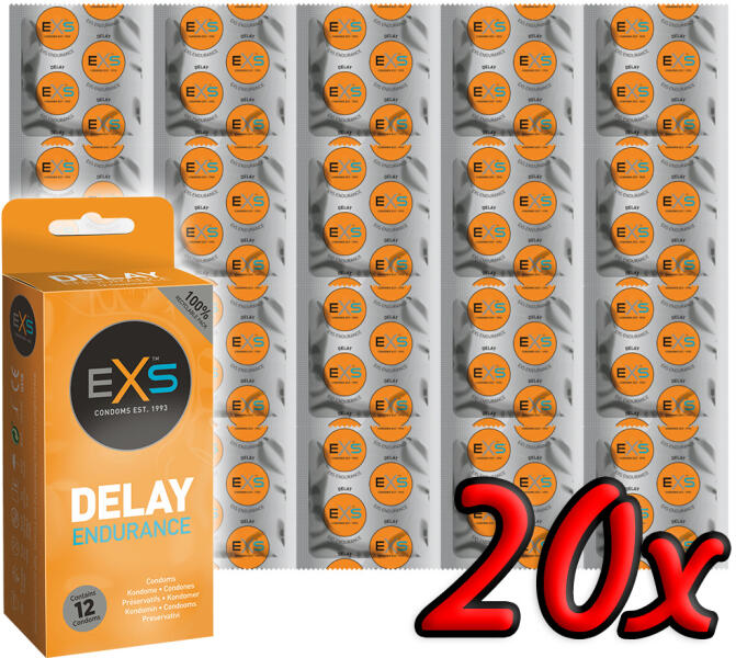 Növelje a magabiztosságát és tartson ki tovább az EXS Endurance Delay óvszerek segítségével. Az 1%-os lidokain érzéstelenítővel ellátott formulát masszírozza be a pénisz fejébe, és hagyja, hogy a zsibbasztó szer óvatosan és ideiglenesen érzéketlenné tegye a hímvesszőt. Erősebb más érzéstelenítőknél, például a benzokainnál; a lidokain célja, hogy növelje a teljesítőképességét a jobb és hosszabb teljesítmény érdekében.
