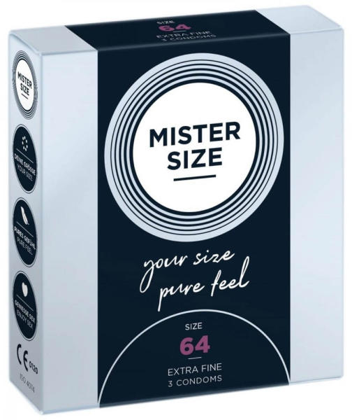 Mister Size 64. - 3 db egyedi méretű, extra vékony óvszer (64 mm)