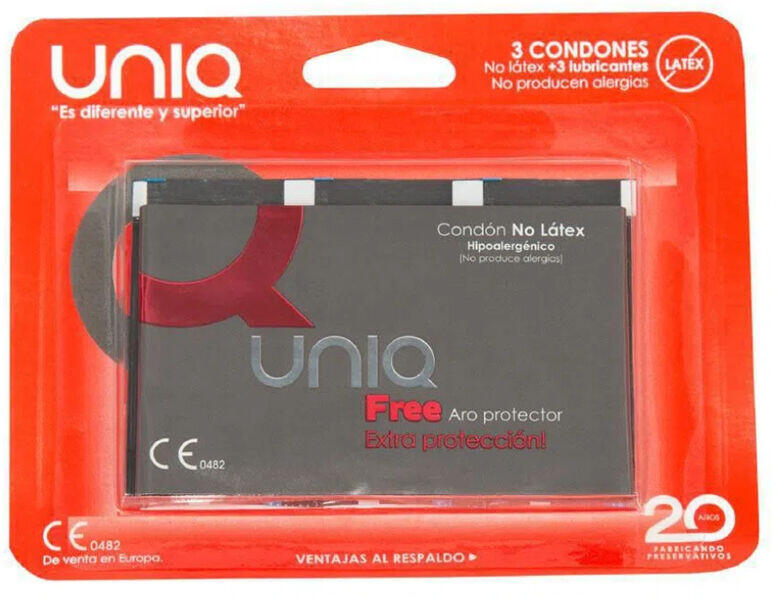 Uniq - latexmentes óvszerek védőgyűrűvel, 3 db