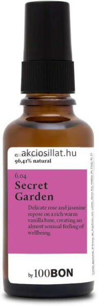 100BON Secret Garden Teszter EDP 30ml A rózsa és a jázmin könnyű és finom illata megtelepszik a jótékony vaníliaágyon. A természettel való teljes egyesülés fizikai érzelme. Fejjegy : Citrus Szívjegy : jázmin Alapjegy: vanília