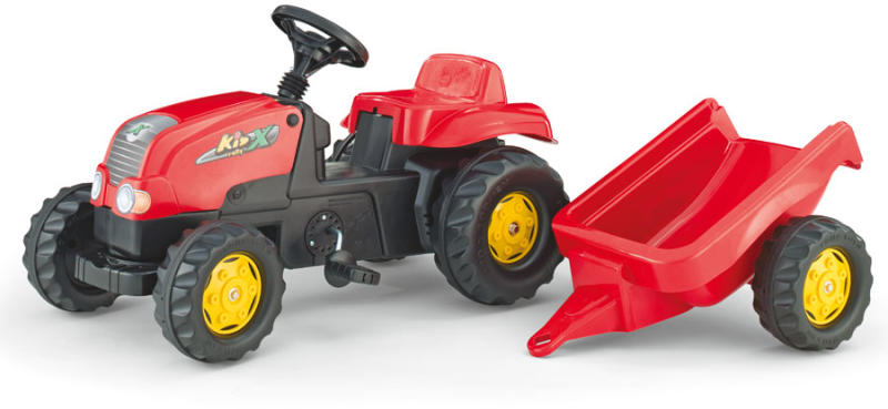 A Rolly Kid-X pedálos traktor utánfutóval piros színben egy kiváló minőségű, szórakoztató és biztonságos játék a kis gazdák számára. A traktor rejtett láncszerkezettel van ellátva, amely fokozza a biztonságot és megakadályozza a baleseteket. Az utánfutó könnyen le- és felszerelhető, így lehetőség van arra is, hogy csak a traktor részt használják a gyermekek, vontatmány nélkül. A traktor és az utánfutó kombinációja segíti a gyermekeket abban, hogy élvezhessék a szabadtéri játékot, miközben a különböző mozgásformák fejlesztésében is szerepet kap. A Rolly Toys 3 év gyártói garanciát vállal a termékre, így hosszú távon biztosítja a szórakozást és a tartósságot. Termékjellemzők: