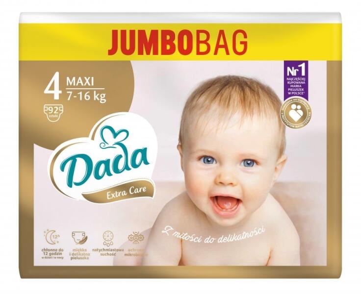 Az eldobható pelenkák Dada Extra Care 4 Maxi 7 és 16 kg közötti súlyú csecsemők számára készültek.
