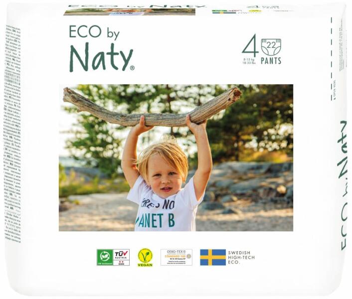 Gyengéd, puha és környezetbarát a svéd Eco by Naty márka népszerű bugyi pelenka 8-15 kg-os gyermekek számára. Ezeket a felhúzható pelenkákat az idősebb gyermekek is értékelni fogják, mivel könnyen levehetőek, így ideálisak a bilire szoktatáshoz. Most még jobb a felszívódásuk a továbbfejlesztett magnak köszönhetően. Kíméletesek a bolygóhoz és a baba popsijához egyaránt. Összetevők : Cellulóz (100% klórmentes, FSC tanúsítvánnyal), szuperabszorbens polimer, nem szőtt szövet (bioanyagból származó polietilénből), PLA (növényi eredetű), polipropilén, polietilén, lycra. Tárolás : 0-25 °C hőmérsékleten tárolandó. Gyártó: Naty AB, Swedenborgsgatan 20A, 118 27 Stockholm, Sweden, sourcing@naty. com, www. naty. comForgalmazó: Swedenborgsgatan 20A, 118 27 Stockholm, Sweden, sourcing@naty. com, www. naty. com
