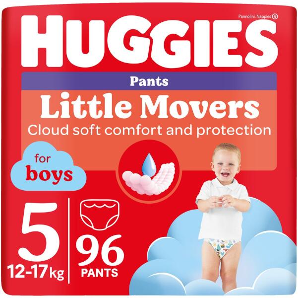 Huggies Pants 2 x Mega pack Nr 5 Boy bugyipelenka, 2x48 db, 12-17 kg, 96 db - puha és rugalmas pánt- azonnali rögzítés - Könnyen eltávolítható;- Távolítsa el az oldalakat;- Könnyű eldobni;