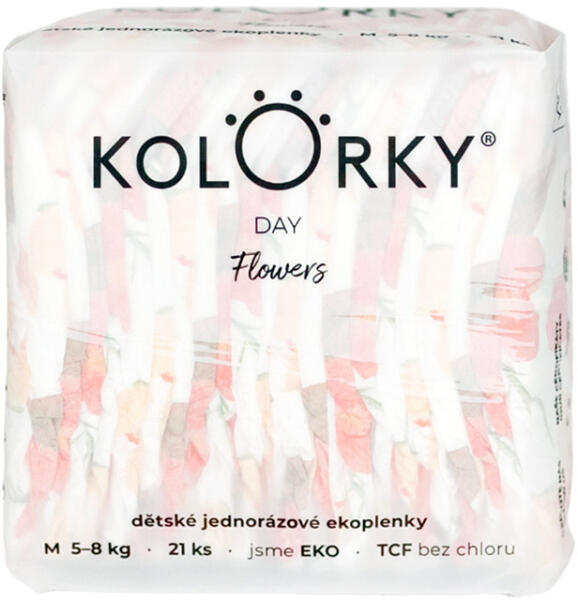 Kolorky DAY Egyszer használatos öko pelenkák, virágos M (5-8 kg) 21 db - vital24