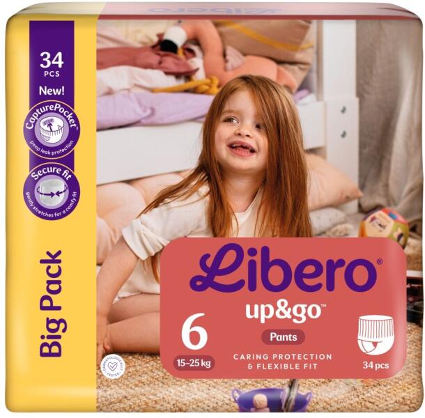 Az Up&Go bugyipelenka puha, teljes egészében légáteresztő, elasztikus derékrésze rugalmasan illeszkedik a baba alakjához, dupla combgumírozása pedig követ minden mozdulatot. Kisnadrág jellegű kialakításával könnyedén fel- és lehúzható. Belső védőrétege és a továbbfejlesztett magrésze gyors nedvszívást biztosít. Szétnyitható oldala gondoskodik a higiénikus eltávolításról. Márka információk A Libero gondoskodásra született. Pelenkáink a legmodernebb környezetbarát technológiával készülnek. Célunk, hogy fenntartható megoldást kínáljunk és csökkentsük a környezetre gyakorolt káros hatásokat. Gyárainkban megújuló áramforrást használunk, a megújuló csomagolás 60%-ban felelősségteljesen termesztett cukornádból készül. Pelenkáink nem tartalmaznak olyan anyagokat, melyek káros hatással lehetnek a babára.