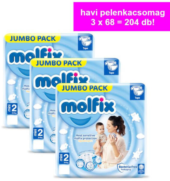 Molfix Havi pelenkacsomag Jumbo (2-es) 3 - 6 kg (204 db/cs) (hpcsmjn68)