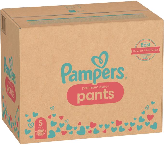 Pampers Premium Care Pants bugyipelenka 5, 12-17 kg, HAVI PELENKACSOMAG 102 db Búcsút inthetünk a macerás peluscseréknek a legújabb pelussal, a Pampers Premium Care Pants bugyipelenkákkal. Babócánk derekát körbeölelő gumírozásának köszönhetően könnyen felhúzható, még akkor is, hogyha a gyermek izeg-mozog. Ugyanilyen gyorsan pedig le is tudjuk róla venni, egyszerűen csak fel kell tépni kétoldalt.
