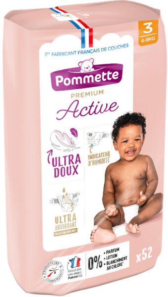 Pommette Premium Active pelenka Csomagolás sérült! (3-as) 4 - 9 kg (52 db/cs)
