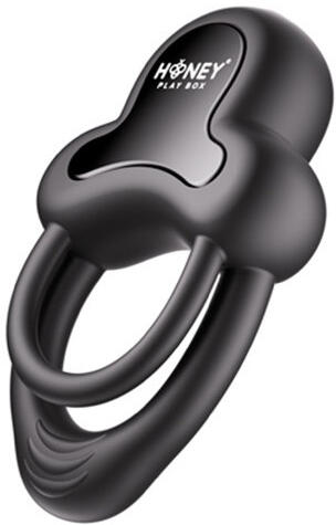 HoneyPlayBox - Anello-App-Controlled Vibrating Double Cock Ring with Clitoral Stimulator Black
