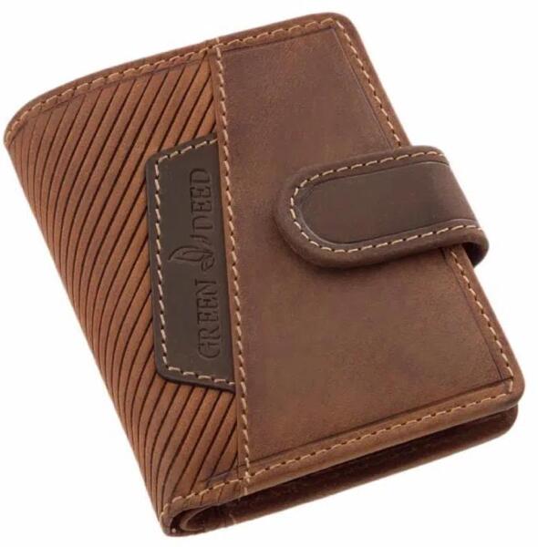 Green deed valódi bőr kártyatartó. Fedele középen egy átkapcsolóval rögzíthető, biztonságossá téve kártyáink tárolását. Kinyitva jobb és bal oldalon bőrből, középen pedig praktikusan használható puha PU anyagból készült kártyatartók kerültek kialakításra. Hátuljában található egy papírpénztartó is a bankjegyek számára.