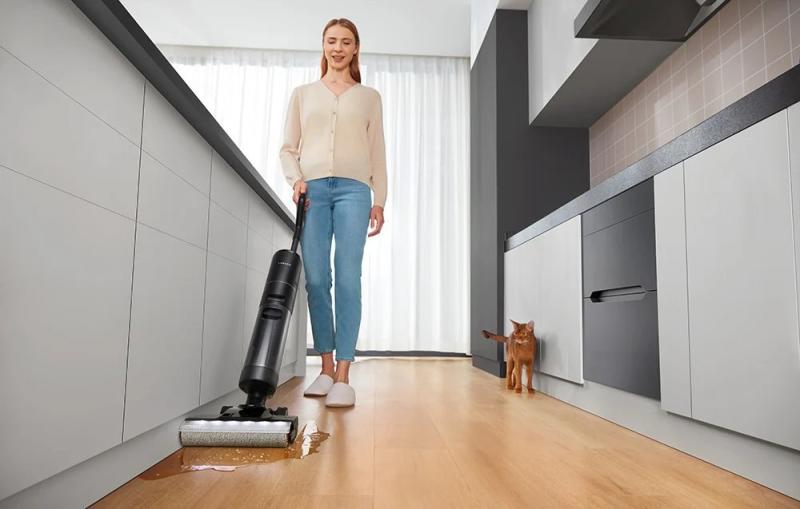 A Dreame H13 Pro kettős kefeforgatással rendelkezik, amely a kézi mosás mozdulatát utánozza. Megakadályozza a haj összegubancolódását és tisztán tartja a kefevédőt. Egy speciális rugós kaparó szorosan illeszkedik a keféhez, kiszorítja a vizet és eltávolítja a szennyeződéseket, míg a fordított forgás intelligens módon a tartályba irányítja a hajakat. Ennek eredményeként a porszívó hatékonyan felszedi a kiömlött szennyeződéseket és eltávolítja a foltokat az olyan nehezen hozzáférhető területekről, mint a sarkok és az alaplécek.