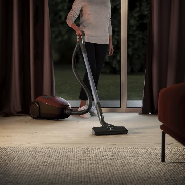 Takarítson hihetetlenül halkan, az eddigi legcsendesebb porszívónkkal. A fejlett motor, a hatékony szigetelés és a speciális szívófej innovatív kombinációjának köszönhetően csupán 57 dB(A) a porszívó zajszintje. Így Ön bármikor porszívózhat anélkül, hogy ezzel másokat zavarna.