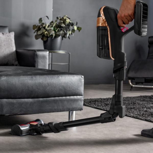 A digitális motor és az egyedi fej kiváló eredményeket biztosít minden típusú padlón, és még a nagyobb szennyeződéseket is felszívja. A Flex technológia megkönnyíti a bútorok alatti tisztítást, a résfúvóka pedig a nehezen hozzáférhető helyekre is befér.