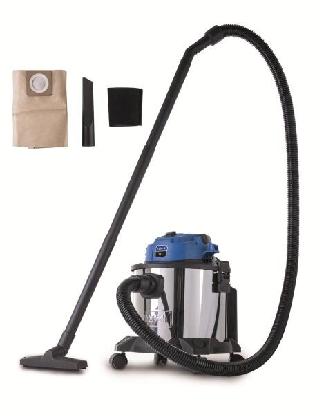 Scheppach VC 16-GL – nagy teljesítményű ipari porszívó nedves és száraz porszívózáshoz 16 l A Scheppach VC 16-GL kompakt és megbízható ipari porszívó , amely nedves és száraz porszívózásra egyaránt alkalmas, ideális műhelyek , garázsok és otthonok számára. A nagy teljesítményű szívóteljesítmény 20 kPa könnyedén megbirkózik a porral, szennyeződésekkel és kiömlött folyadékokkal. A praktikus fúvó funkció lehetővé teszi a por hatékony eltávolítását a nehezen hozzáférhető helyekről. A tartós rozsdamentes tartály 16 literes űrtartalommal rendelkezik, és gyorscsatlakozós záróelemmel van ellátva az egyszerű zsákcsere érdekében, míg az erős 1200 W-os elektromotor megbízható működést és hosszú élettartamot biztosít. A háromméteres tápkábel, 1,8 m-es tömlő és három hosszabbító cső elegendő munkaterületet biztosít, a praktikus tartók pedig lehetővé teszik a kiegészítők közvetlen tárolását a porszívón. A kényelmes kezelés érdekében a készülék ergonomikus fogantyúval és négy forgatható kerékkel rendelkezik, amelyek biztosítják a sima mozgást minden irányban. A csomag tartalmazza a teljes felszerelést: papírzsák, habszűrő , réstisztító és padlószívó fej, valamint három műanyag hosszabbító cső. A kompakt méretek helytakarékos tárolást biztosítanak és megkönnyítik a porszívó elhelyezését. Fő előnyök – Scheppach VC 16-GL: