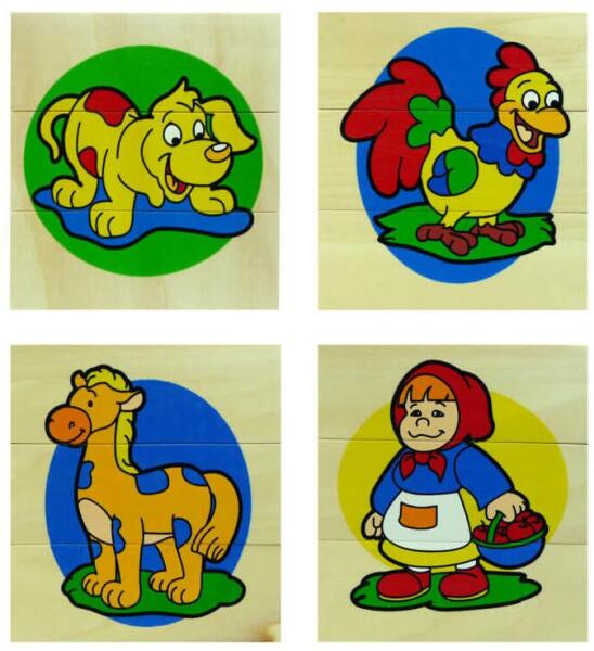 3 részes puzzle kirakó (kutya, kakas, ló, kislány)