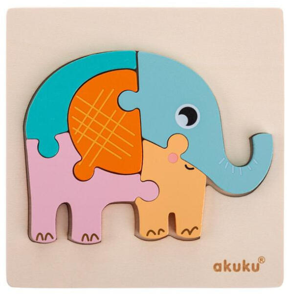 AKUKU Tanuló játék Fa puzzle, elefánt (fpela)