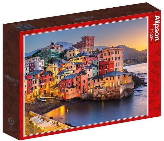 Gyönyörködj a naplementében az Alipson 1000 db-os puzzle - Genoa, Italy kirakóval! A képen az olaszországi Genova egy hangulatos kis csónakkikötőjét látjuk mesés, színes házakkal körülvéve.