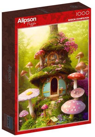 Az  Alipson 1000 db-os puzzle - Mushroom House (50021)  a képen egy varázslatos, gombaház jelenik meg, amely egy mesevilágot idéz, élénk színek és aprólékosan kidolgozott részletek teszik különlegessé a kirakót.