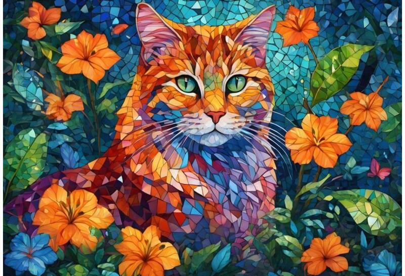 Macskaformát ábrázoló, színpompás mozaikdarabok alkotják ezt a különleges képet. Az Alipson 50160 - Cat Mosaic - 1000 db-os puzzle vibráló színei szinte életre keltik a szépséges cicát.