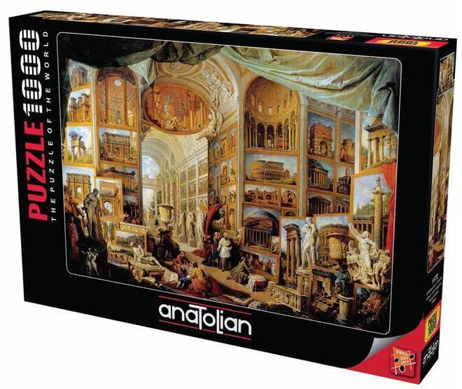 Az Anatolian 1000 db-os puzzle - Interior of an Imaginary Picture Gallery (1172) képzeletbeli galériája festmények sokaságát mutatja be egy szürreális térben. Tökéletes választás a művészet szerelmeseinek.