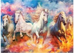 A kép a szabadság érzését jeleníti meg egy lendületes, vágtázó lovakat ábrázoló jeleneten keresztül. Az Anatolian 1180 - Freedom - 1000 db-os puzzle  képét élénk színek és mozgalmas kompozíció jellemzi.