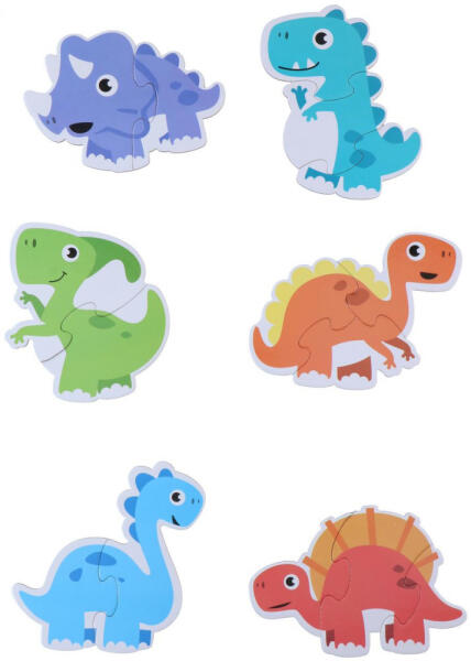 RAKTÁRRÓL AZONNAL! Baba puzzle dínós A nagy puzzle darabok segítenek a gyerekeknek a formák felismerésében és közben a finommotorikus készségük is fejlődik. 6 dinoszaurusz figura rakható ki belőle, a figurák 2-3 puzzle darabból állnak.