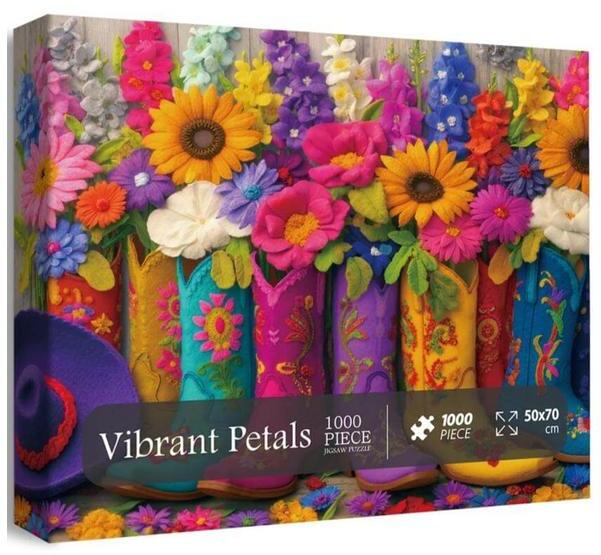 Élénk színű nemezelt virágok és westerncsizmák kavalkádja vár rád Bboldin 1000 db-os puzzle - Vibrant Petals (PT-324) képén. A puzzle minden darabja extra vibrálást ad a szuperszínes, vidám kompozícióhoz.