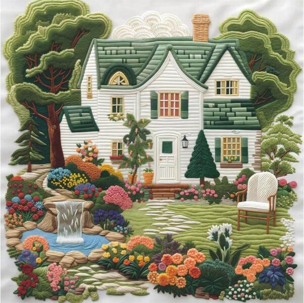 Egy csodaszép vidéki idill elevenedik meg a Bboldin PT-405 - Embroidery Courtyard - 1000 db-os puzzle képén, egy lenyűgöző hímzés formájában. A részletgazdagság és színek különleges kirakási élményt nyújtanak.