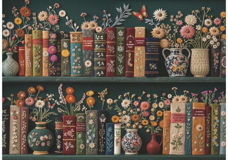 A Bboldin Z-1734 - Blooming Bookshelf - 1000 db-os puzzle virágzó könyvespolcán a könyvek és a természet találkoznak. Fedezd fel a kép csodaszép részleteit és relaxálj ezzel a különleges kirakóval!