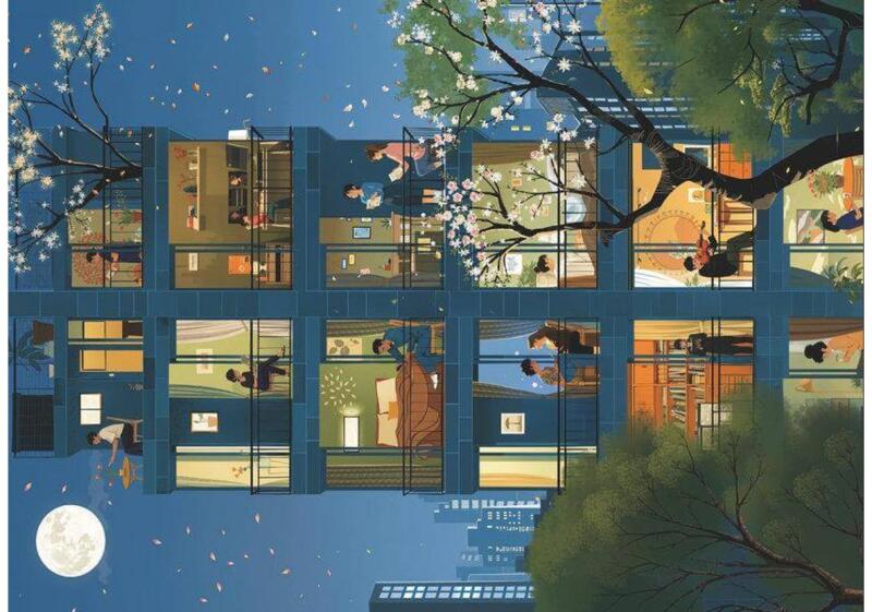 Éjszakai városi élet részletei elevenednek meg a Bboldin Z-1979 - Nightlife In The Building - 1000 db-os puzzle több emeletes épületében. Fedezd fel az izgalmas részleteket és kapcsolódj ki ezzel a kellemes hangulatú kirakóval!
