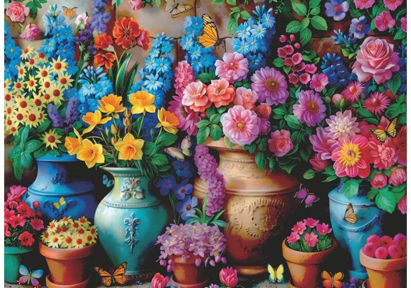 Tavaszi virágok buja, vidám kavalkádja kel életre a Bboldin Z-694 - Spring Scenery - 1000 db-os puzzle képén friss színekkel.