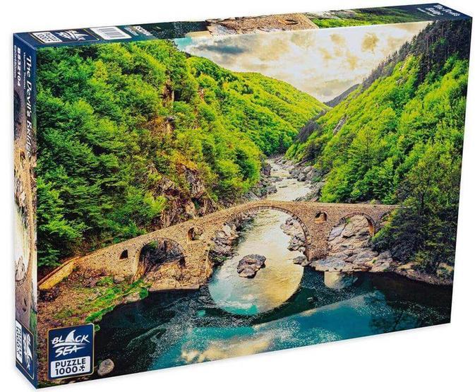 Az Ardino város közelében, az Arda folyón átívelő Ördöghíd nemcsak konstrukciója miatt lenyűgöző, hanem a hozzá kapcsolódó titokzatos legendák miatt is. Ez a Keleti Rodope-hegység egyik leglátogatottabb helyszíne. A Black Sea 1000 db-os puzzle - Devil’s Bridge (BS32104) képén misztikus hangulatú Ördög-híd elevenedik meg, egy erdő mélyén ível át a csodás, türkiz vízű folyón.