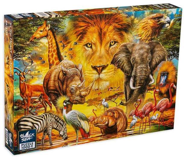 Élvezd az afrikai szavanna forró nyüzsgését elefántokkal, zsiráfokkal, oroszlánokkal és mindenféle egzotikus állatokkal. A Black Sea 1000 db-os puzzle - In the heart of Africa (BS72112) képén az afrikai természet vad és lenyűgöző szépsége jelenik meg.