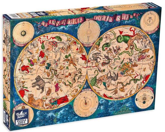 A Black Sea 500 db-os puzzle - Sky Map, 1670, Frederick de Witt (BS82230) egy lenyűgöző, 17. századi csillagtérkép másolata, tele antik részletekkel. Ideális választás a történelem és az asztronómia kedvelőinek.