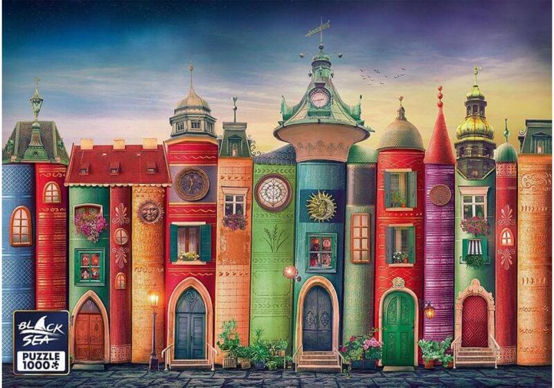 Ez a kép igazi csemege könyv rajongóknak és álmodozóknak! A Black Sea BS82227 - The City of Books - 1000 db-os puzzle egy képzeletbeli várost jelenít meg, ahol az épületeket könyvek alkotják.