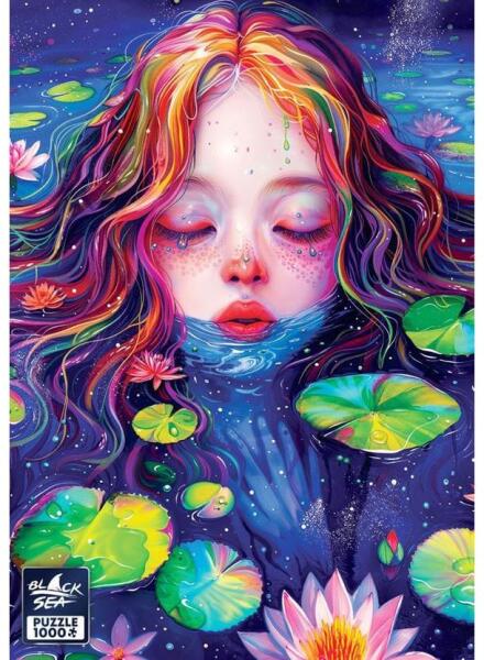 Egy kecses női alak lebeg a vízililiomok között, mintha maga is a víz szülötte lenne. A Black Sea BS82516 - The Water Lily - 1000 db-os puzzle misztikus hangulatú képe szinte megigézi a nézőt.