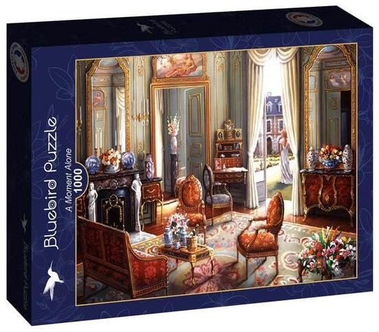 Állj meg egy pillanatra és tölts el néhány kellemes órát magaddal és a Bluebird 1000 db-os puzzle - A Moment Alone  kirakóval! A romantikus stílusú képen egy gazdagon díszített szobába csöppenünk, ahol a gyönyörű bútorok és virágok között előkelő arisztokratáknak érezhetjük magunkat.