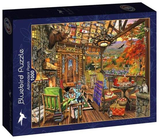 A francia  Bluebird  2019 óta van jelen a kirakók világpiacán. Magas minőségű, környezettudatos technológiával készült, mégis megfizethető áron elérhető puzzle képei közt elsősorban művészi alkotások találhatók. Az 1000 db-os Bluebird puzzle - Adirondack Porch  című képén egy kanadai faház teraszát láthatjuk, őszi hangulatban, egy szendergő kutyával, mókusokkal és madarakkal.