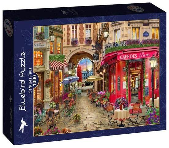 A francia  Bluebird  2019 óta van jelen a kirakók világpiacán. Magas minőségű, környezettudatos technológiával készült, mégis megfizethető áron elérhető puzzle képei közt elsősorban művészi alkotások találhatók. Az 1000 db-os Bluebird puzzle - Cafe des Paris  című képén egy párizsi kávézó terasza látható, háttérben az Eiffel-toronnyal.