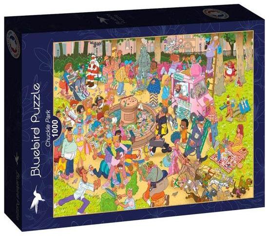 A francia  Bluebird  2019 óta van jelen a kirakók világpiacán. Magas minőségű, környezettudatos technológiával készült, mégis megfizethető áron elérhető puzzle képei közt elsősorban művészi alkotások találhatók. Az 1000 db-os Bluebird puzzle - Chuckle Park  című képe egy nyüzsgő városi parkot ábrázol, rengeteg mókás, vicces jelenettel, felfedezni való részlettel.