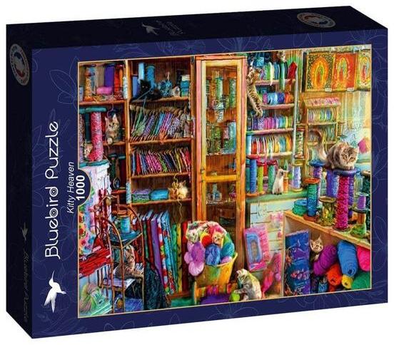 A francia  Bluebird  2019 óta van jelen a kirakók világpiacán. Magas minőségű, környezettudatos technológiával készült, mégis megfizethető áron elérhető puzzle képei közt elsősorban művészi alkotások találhatók. Az 1000 db-os Bluebird puzzle - Kitty Heaven  című képe egy igazi cica mennyországot ábrázol, ahol a virgonc kiscicák egész nap csak pamutgombolyagokkal játszanak.