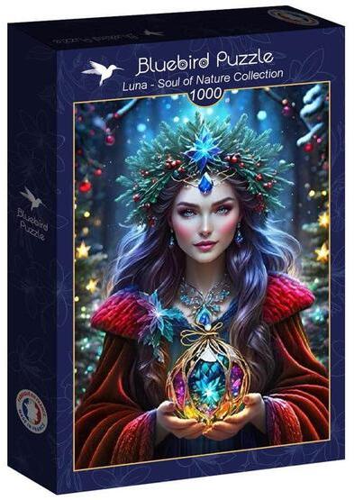 A francia  Bluebird  2019 óta van jelen a kirakók világpiacán. Magas minőségű, környezettudatos technológiával készült, mégis megfizethető áron elérhető puzzle képei közt elsősorban művészi alkotások találhatók. Az 1000 db-os Bluebird puzzle - Luna - Soul of Nature Collection  című képén Luna, a hold istennője látható, egy pompás, téli hangulatú koszorúval a fején. A Soul of Nature Collection puzzle-sorozat része, ami a természet varázslatos világát eleveníti meg