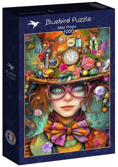 A francia  Bluebird  2019 óta van jelen a kirakók világpiacán. Magas minőségű, környezettudatos technológiával készült, mégis megfizethető áron elérhető puzzle képei közt elsősorban művészi alkotások találhatók. Az 1000 db-os puzzle - Mad Props (90656)  című képén az Alíz Csodaországban című mű egyik közkedvelt karaktere, a Bolond Kalapos látható.