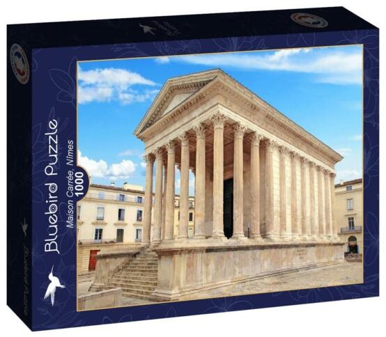 Bluebird 1000 db-os puzzle - Maison Carrée, Nimes  című képén  Franciaország  egyik legjobb állapotban fennmaradt ókori római templom a látható, mely a keresztény templommá szentelésének köszönheti, hogy elkerülte sok más ókori templom sorsát, a teljes lerombolást.   Nimes  városát Franciaország Rómájá nak is nevezik az ókorból megmaradt számos műemléknek köszönhetően.
