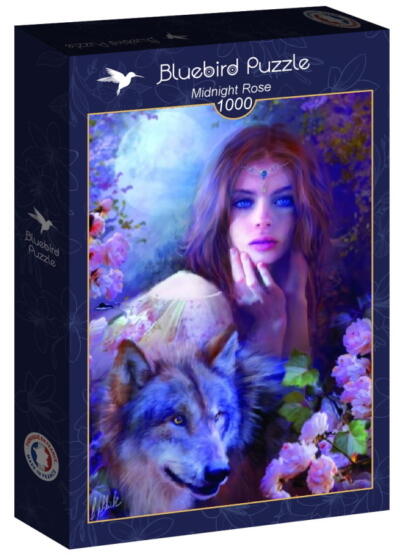 A francia  Bluebird  2019 óta van jelen a kirakók világpiacán. Magas minőségű, környezettudatos technológiával készült, mégis megfizethető áron elérhető puzzle képei közt elsősorban művészi alkotások találhatók. Az 1000 db-os Bluebird puzzle - Midnight Rose  című képén a német művész, Bente Schlick ábrázolásában egy nő és egy farkas portréja látható az éjszakai holdfényben.
