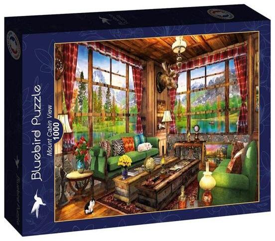 A francia  Bluebird  2019 óta van jelen a kirakók világpiacán. Magas minőségű, környezettudatos technológiával készült, mégis megfizethető áron elérhető puzzle képei közt elsősorban művészi alkotások találhatók. Az 1000 db-os Bluebird puzzle - Mount Cabin View  című képén egy erdei faház hangulatos nappalijából csodálhatjuk meg a kilátást a hegyekre.