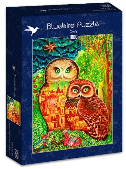 Az 1000 db-os Bluebird puzzle  képén a csillagos éj leple alatt baglyok fürkészik a tájat.