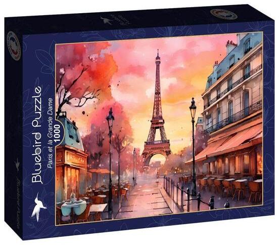 A francia  Bluebird  2019 óta van jelen a kirakók világpiacán. Magas minőségű, környezettudatos technológiával készült, mégis megfizethető áron elérhető puzzle képei közt elsősorban művészi alkotások találhatók. Az 1000 db-os Bluebird puzzle - Paris et la Grande Dame  című képén a párizsi dáma, az Eiffel-torony látható egy kávézókkal szegélyezett utcából.